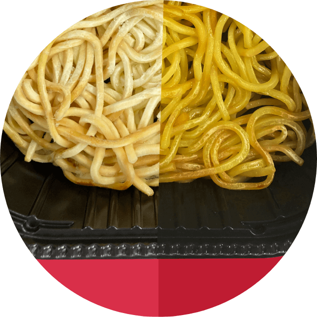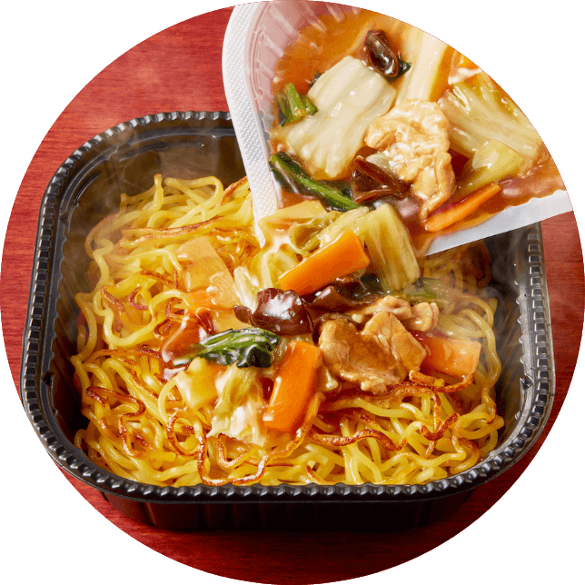電子レンジ調理をすることで、さらにこんがり色づき、香ばしい麺に