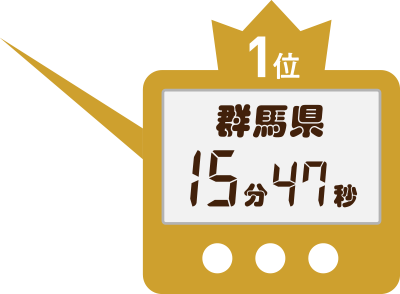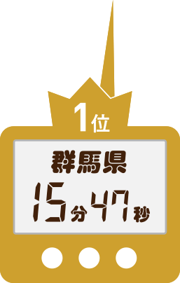 最も短い時短県1位は「群馬県(15分47秒)」。