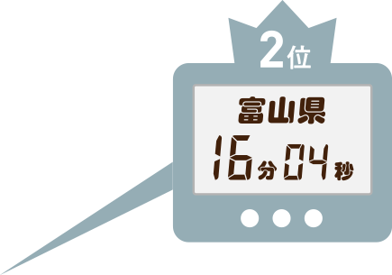 第2位は「富山県(16分04秒)」、
