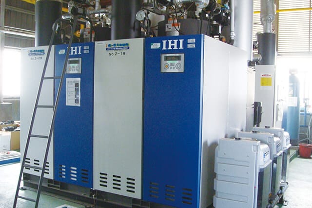 ニチレイフーズの食品工場では、揚げる・焼くなどの製造工程にて熱エネルギーを使います。その熱エネルギーを作るボイラーの燃料を、灯油や重油からCO2排出量の少ない都市ガスやプロパンガスへの転換を計画的に実施しています。