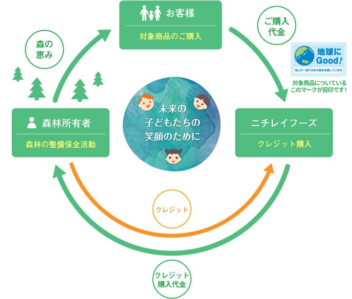 ニチレイフーズは、森林のCO2吸収量のクレジットを購入しています。