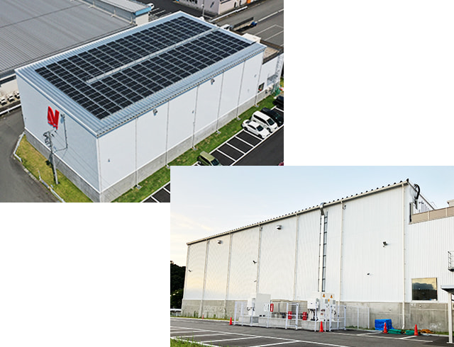 ニチレイフーズでは、国内の主要生産工場において、CO2フリー電力の導入、自社建物に太陽光パネルの設置、オンサイト/オフサイトコーポレートPPAの活用などのポスティングを組みあわせ、使用電力にかかるCO2排出量ゼロの実現にむけ取り組んでいます。
