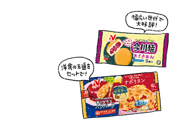 若い世代にも人気の「今川焼」や、レストランのように洋食とパスタがワンプレートで食べられる「三ツ星プレート」シリーズ、個食麺シリーズより「香ばし麺の五目あんかけ焼そば」といった新たなヒット商品も生まれています。