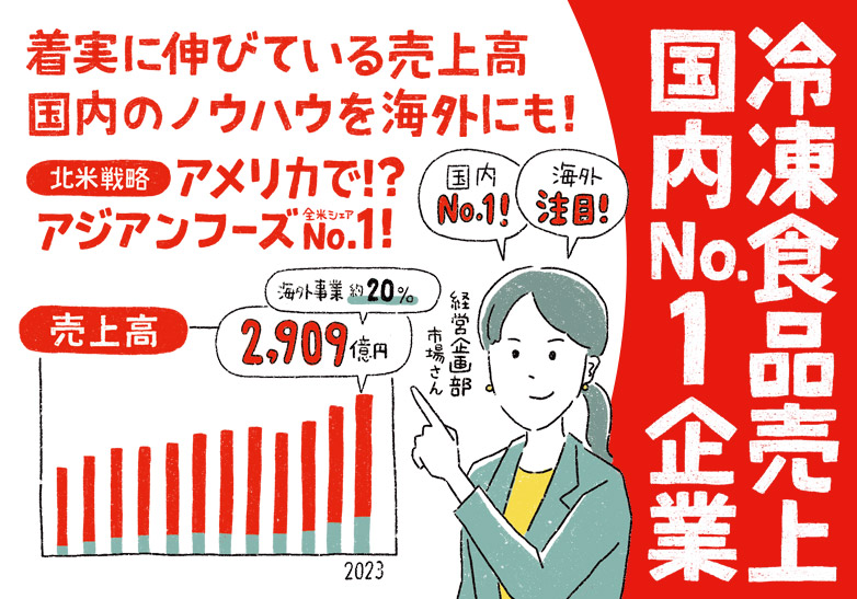 2023年度もニチレイフーズは過去最高の売上高を更新。冷凍食品業界をリードしています。とくに都市部では、一定の割合でリモートワークが定着。内食(家で調理して食べる食事)や中食(弁当や総菜を持ち帰って食べる食事)の需要も増えています。